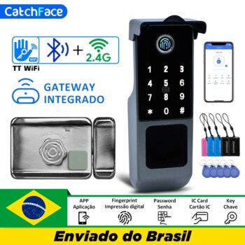 (Armazem Brasil)  Fechadura CatchFace Inteligente Sobrepor Wifi Externa