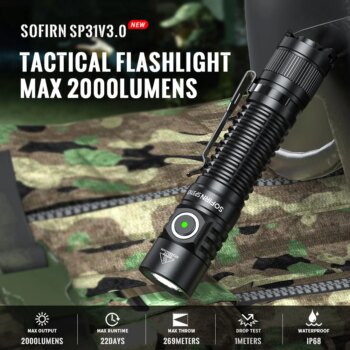 A Sofirn SP31V3.0 é uma excelente lanterna tática, com um design compacto e leve, LED de alta qualidade, alcance impressionante e bateria de longa duração. É ideal para atividades ao ar livre, camping, caminhadas e outras situações que exigem uma fonte de luz potente e confiável. A lanterna é à prova d'água, resistente a quedas e possui um interruptor duplo para fácil operação. Apesar da falta de informações sobre o tempo de carregamento da bateria, a Sofirn SP31V3.0 é uma ótima compra para quem procura uma lanterna tática de alta qualidade.