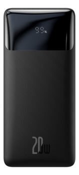 O Power Bank Baseus de 10000mAh e 20W é uma opção portátil para carregar dispositivos móveis, com a conveniência de um display digital para monitorar a carga.