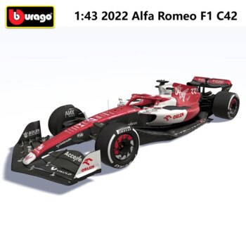 | Marca | Bburago; – Modelo: Alfa Romeo C42; – Escala: 1:43; – Tipo: Modelo de carro de Fórmula 1; – Material: Liga metálica (Diecast); – Ano do carro representado: 2022; – Detalhes: Réplica fiel do carro de corrida; – Rodas: Pneus de borracha com marcação Pirelli; – Cores: Predominantemente vermelho e branco; – Patrocinadores: Logotipos de patrocinadores como Orlen, Stake, AMX, Adler, FIA, Pirelli, entre outros; – Número do carro: 77. |