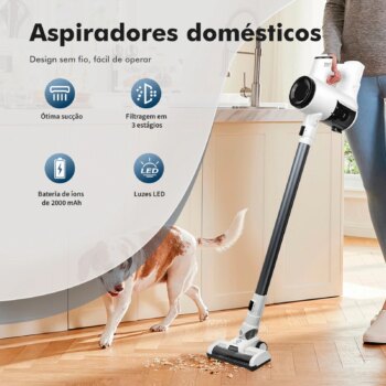 O Aspirador Sem Fio 120W 2000mAh 6Kpa/9.5Kpa 0.75L LED é uma solução prática e eficiente para a limpeza diária de ambientes domésticos, especialmente para quem possui animais de estimação. Seu design sem fio oferece liberdade de movimento, enquanto as duas velocidades de sucção e as luzes LED na escova garantem uma limpeza eficaz em diversas superfícies e condições. A bateria de 2000mAh e o sistema de filtragem em 3 estágios complementam a proposta de valor, tornando-o uma escolha conveniente para manutenção rápida e remoção de pelos. Embora a autonomia da bateria possa ser um fator a considerar para limpezas mais longas, sua leveza e portabilidade o tornam ideal para tarefas rápidas e acessibilidade em diferentes áreas da casa.