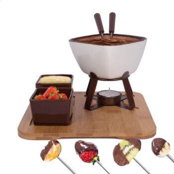 - O conjunto é perfeito para servir chocolate derretido, queijo ou frutas.