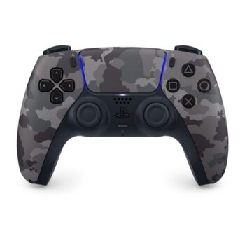 • O controle sem fio PlayStation DualSense – Gray Camouflage é uma versão especial do controle padrão do PlayStation 5 com um design camuflado em tons de cinza. Possui gatilhos adaptáveis, feedback háptico e microfone embutido.