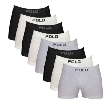 Kit de cuecas boxer com bom custo-benefício, oferecendo praticidade e variedade de cores. A utilização de algodão garante conforto.
