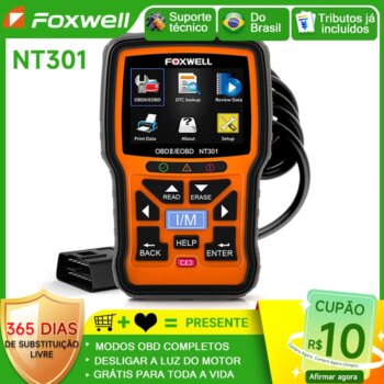 O FOXWELL NT301 é um scanner automotivo básico e acessível que é perfeito para a maioria dos motoristas. Ele é fácil de usar e pode ler e apagar códigos de falha, além de exibir dados ao vivo do motor. No entanto, ele não possui recursos avançados, como codificação ou programação. Se você precisa de um scanner automotivo mais avançado, você pode querer considerar um modelo diferente.