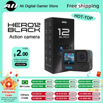 A GoPro Hero 12 Black oferece excelente qualidade de vídeo e imagem, com recursos avançados de estabilização. Seu design robusto e impermeável a torna ideal para atividades ao ar livre. É uma ótima opção para entusiastas de ação e profissionais que buscam alta qualidade em suas gravações.