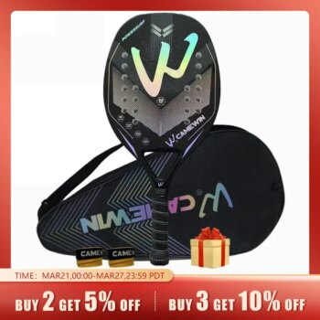 Esta raquete de tênis de praia é uma ótima escolha para jogadores de todos os níveis. Ela é feita de fibra de carbono de alta qualidade e tem uma superfície áspera para melhor controle da bola. A raquete também vem com uma capa de proteção e acessórios, o que a torna uma ótima opção para jogadores que estão procurando uma raquete de alta qualidade a um preço acessível.